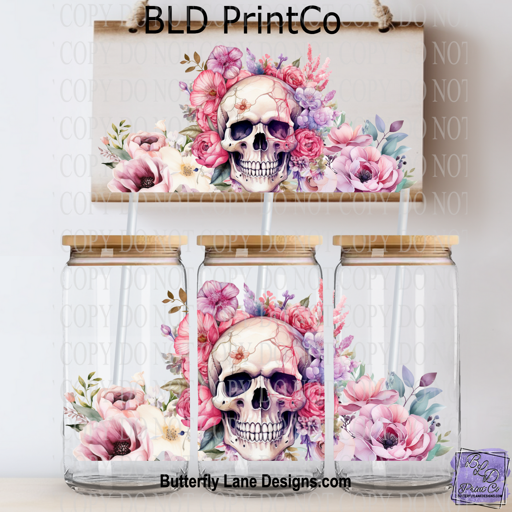 L414 Skull with Pink florals